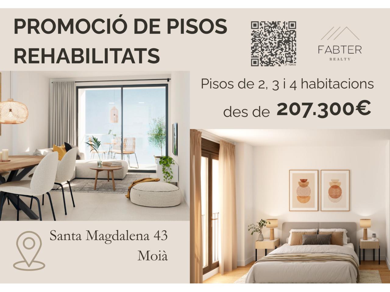 FABTER REALTY presenta esta promoción de viviendas totalmente rehabilitadas en C/ Santa Magdalena, 43 (Moià), una oportunidad única para estrenar vivienda en un edificio renovado con calidades actuales y diferentes ti...